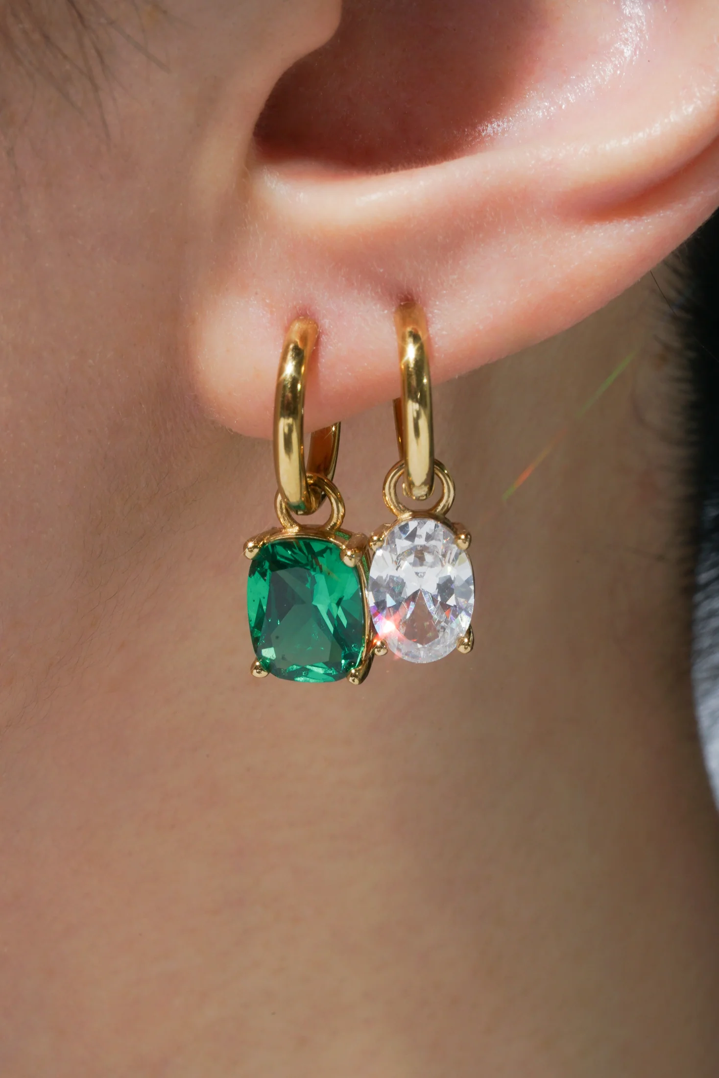 A glittering, oval cut, see-through CZ gem to pair with out fitting hoops. Each 5A quality CZ stone is hand set. Sold as a single. Please see Earring Charm Fit Guide in pictures to see which accompanying hoops will fit. Please Note: Earring Charms are Final Sale.