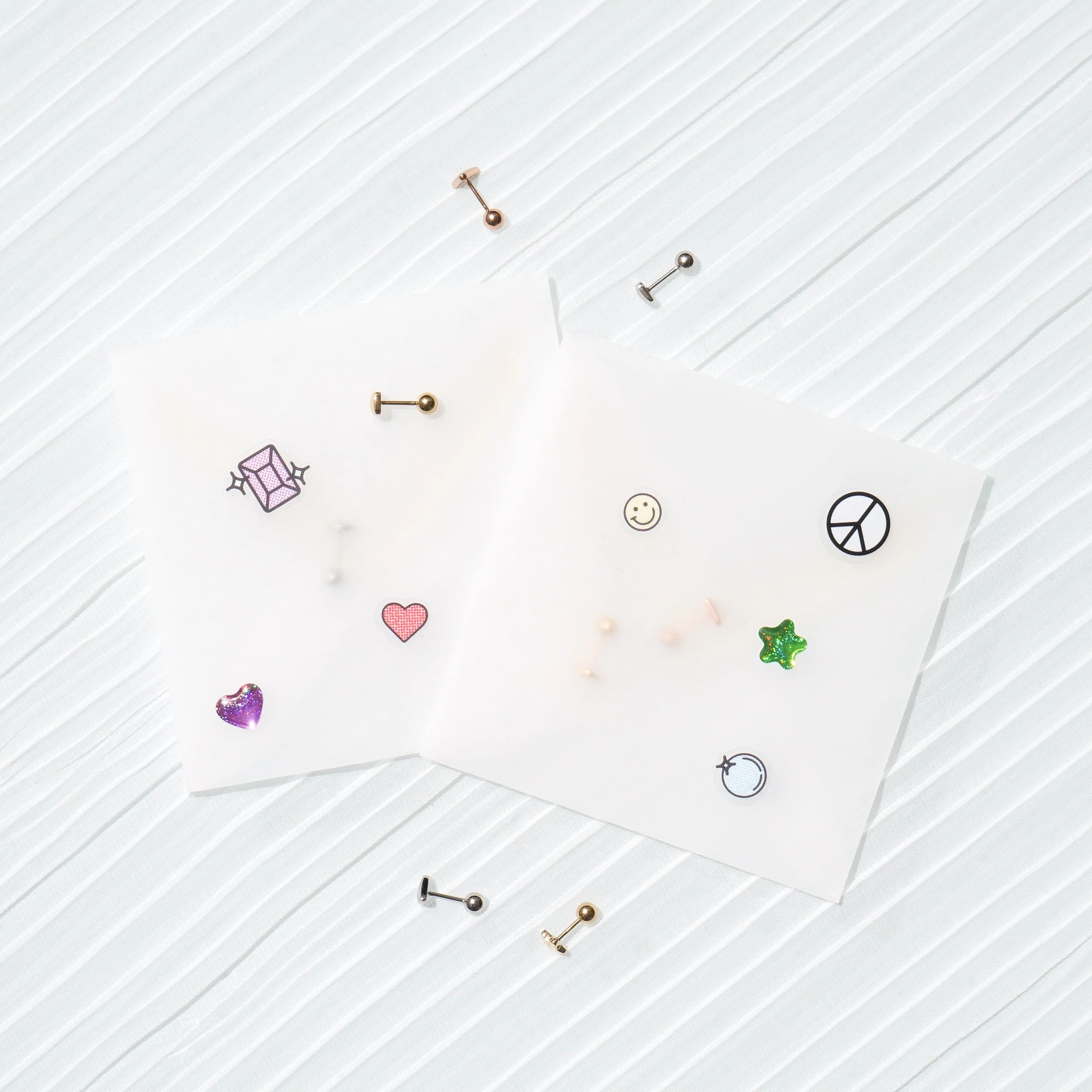 A single puffy heart sticker earring. Screw-on ball backing and reversible: just flip around to wear the ball side. Waterproof. Single stud only. Please note: Earrings are final sale.